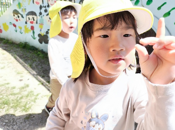 園庭でのびのびと遊んだ後、部屋で給食の用意を始めるころ、