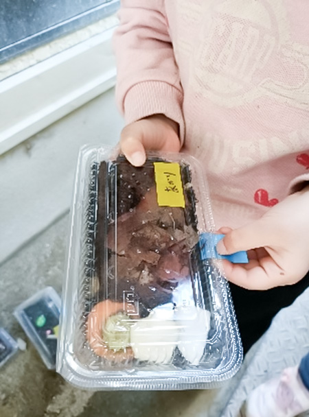 餌も一緒に入れたパックは、日陰になるらいおん組の奥のスペースにそっと並べています。