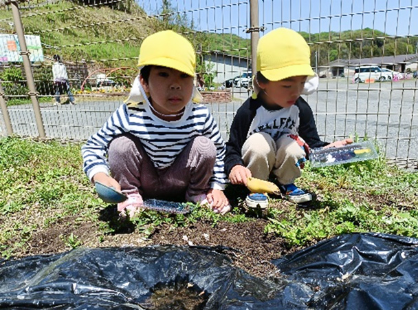 プランターの下をのぞき込んだり、トンネルの中に入ってみたり、畑の中に入ってみたり。